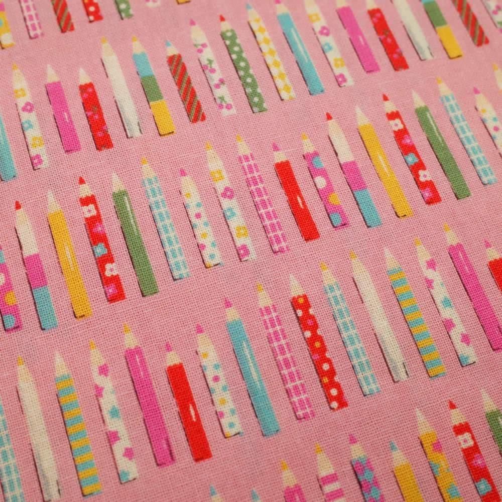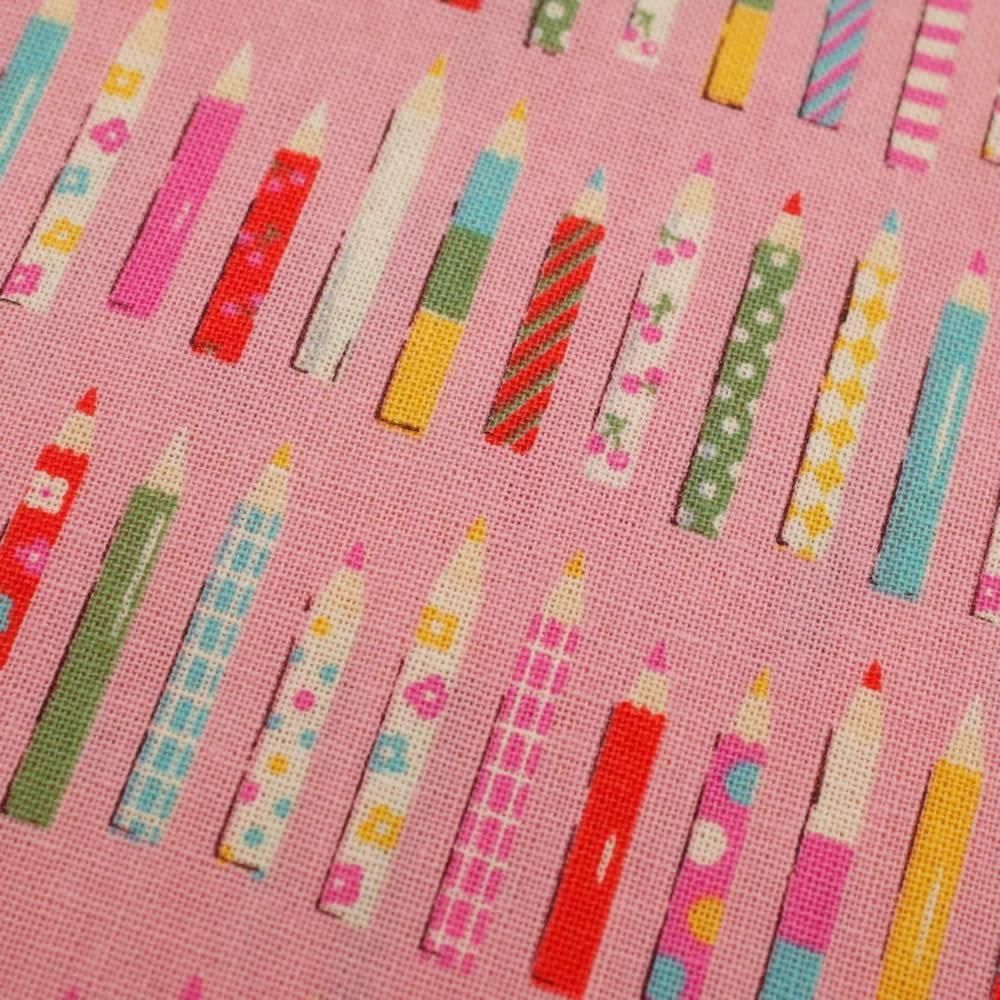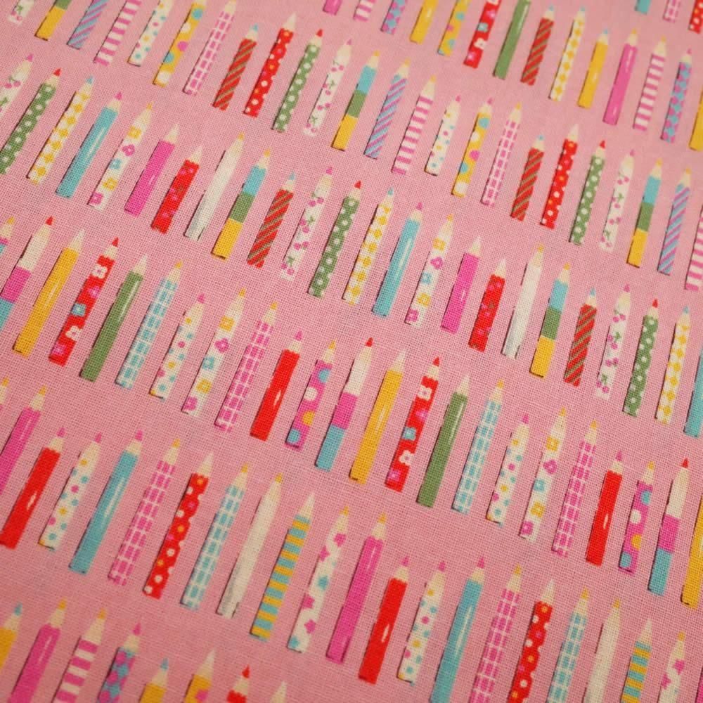 セレクト生地 コロコロえんぴつ(ピンク)約50cm×110cm カット済み